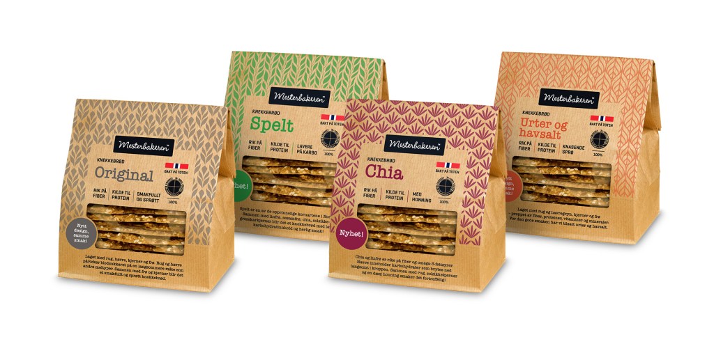 Mesterbakeren knekkebrød Disse knekkebrødene har vært mine favoritter i flere år. De kommer nå i mange ulike smakskombinasjoner. «Original» og «Urter og havsalt» er personlige favoritter, men den med lavest andel karbohydrat er «Spelt, frø og kjerner». Selges kun på Rema1000 så vidt jeg har sett.
